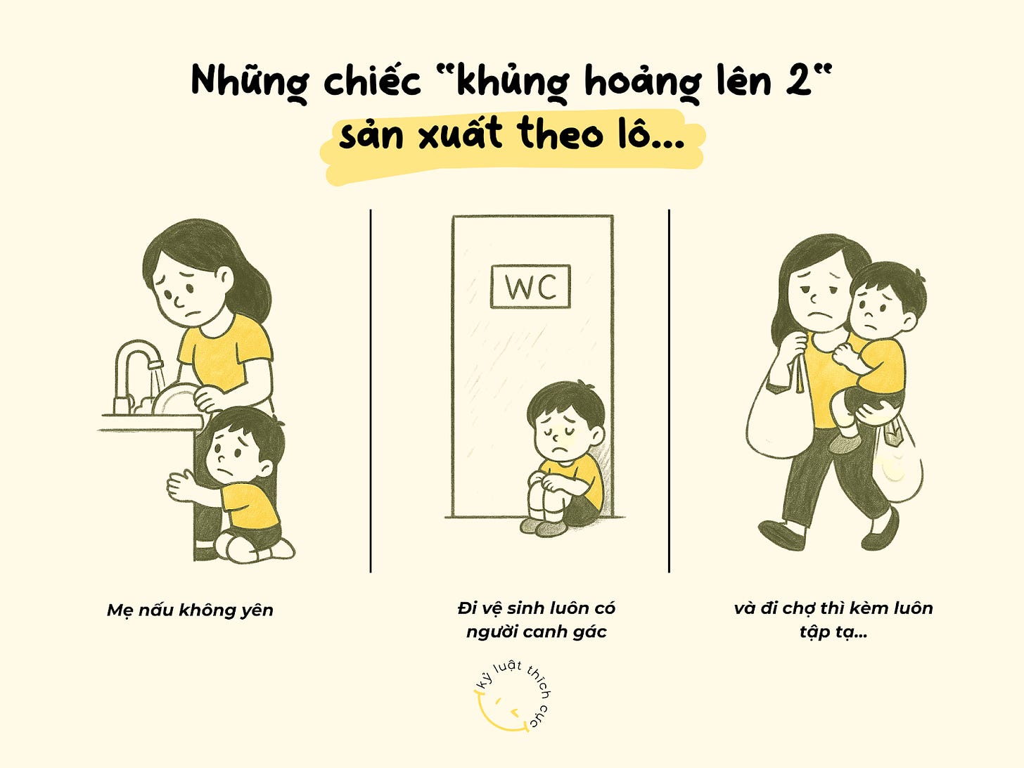 Sau một thời gian quan sát chính bản thân và đồng hành cùng các ba mẹ, mình nhận ra ở độ tuổi lên 2, đứng trước những trận khóc đòi bế liên tục, ba mẹ thường sẽ đứng giữa 2 vòng lặp quen thuộc: