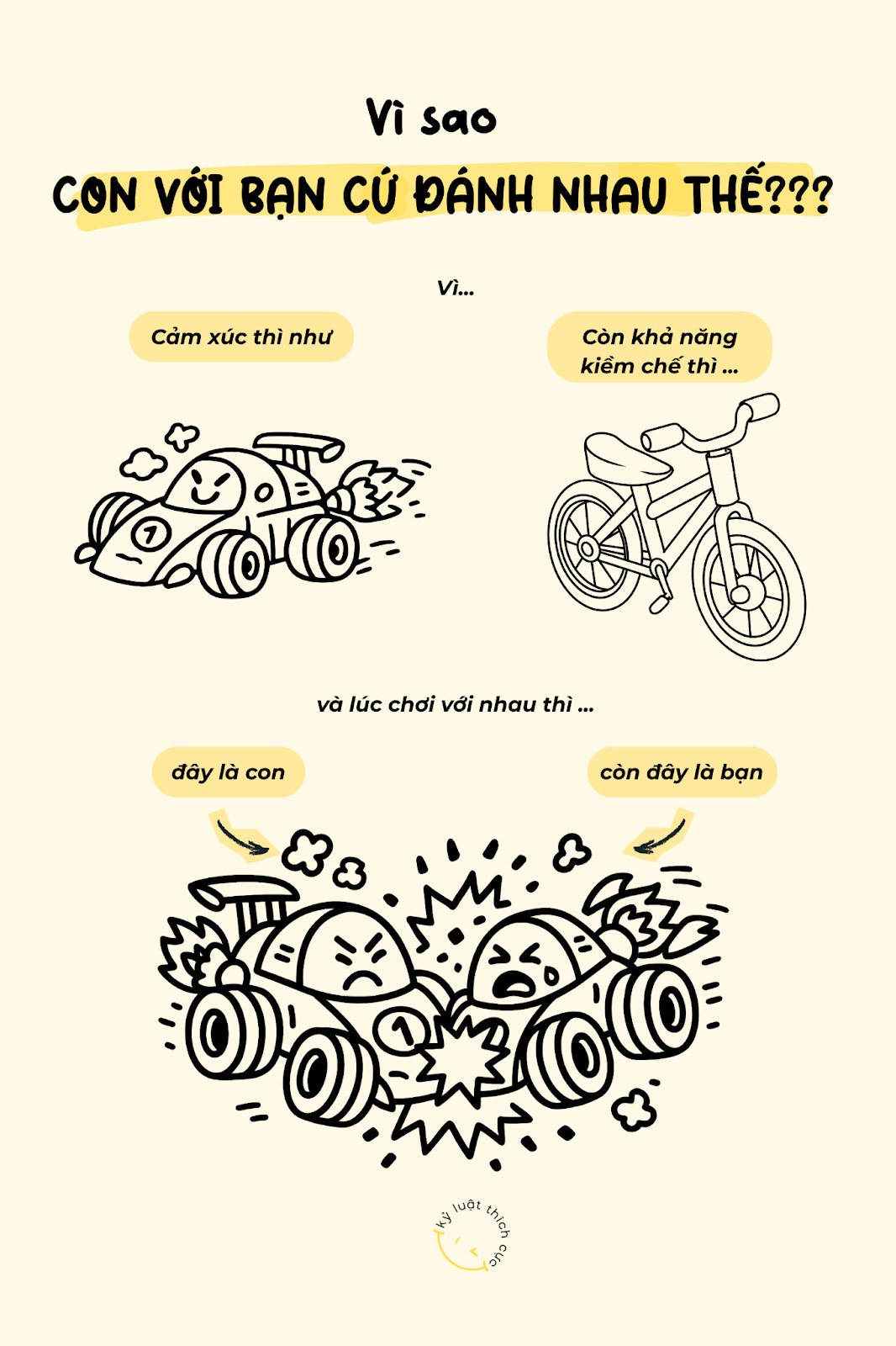 1. Vì cảm xúc của con chạy nhanh như xe đua, còn khả năng kiềm chế thì như phanh xe đạp