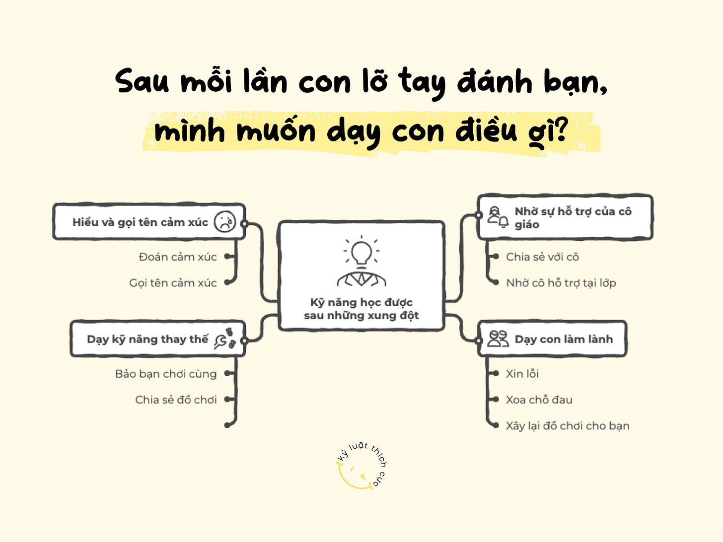 “Sau mỗi lần con lỡ tay đánh bạn, mình muốn dạy con điều gì? Kỹ năng điều tiết cảm xúc hay nỗi sợ hãi vì làm sai?”