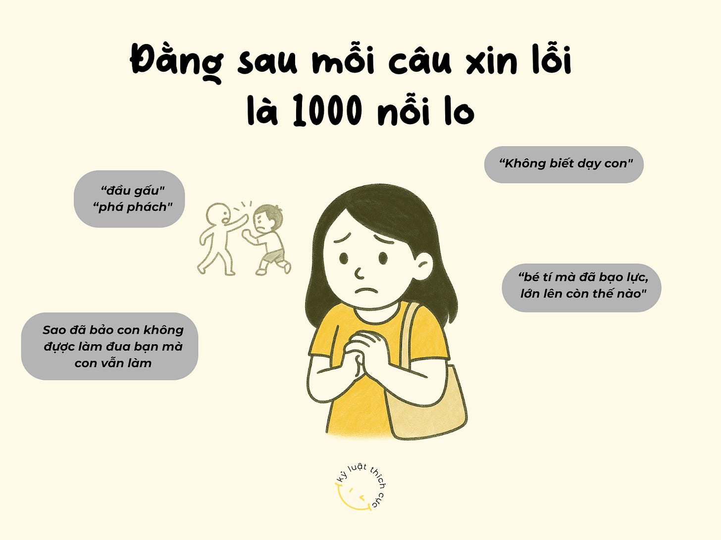 Mình thì trộm vía, chưa phải đi xin lỗi phụ huynh khác bao giờ. Tuy nhiên, mình hiểu cảm xúc và những suy nghĩ của các ba mẹ trong những tâm sự đó. Đã kinh qua tư vấn không ít các trường hợp măng non đánh/cắn/cào bạn, mình có thể túm lại được phần nào những nỗi lo của ba mẹ qua hành vi ấy.