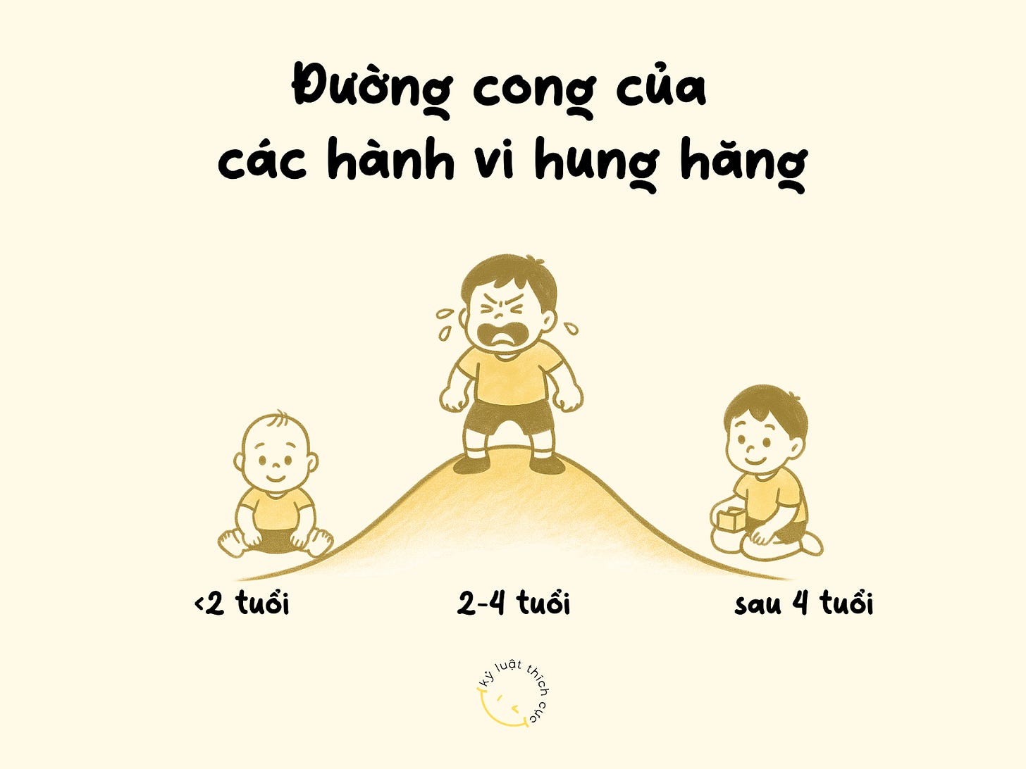 2-3 tuổi là đỉnh điểm của các hành vi hung hăng (đánh, cắn, cào, cấu,...) → đây là giai đoạn phát triển sinh học bình thường, không phải tính cách.